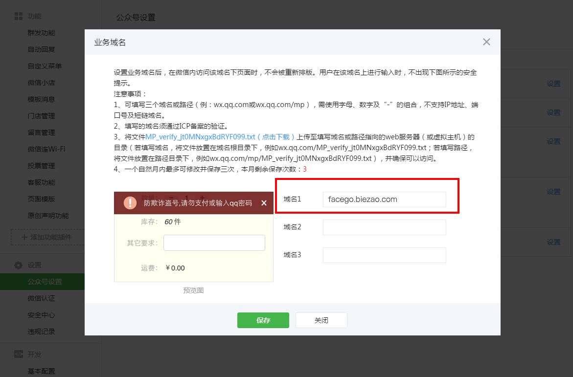 完善(业务域名)(JS接口安全域名)(网页授权域名)内容