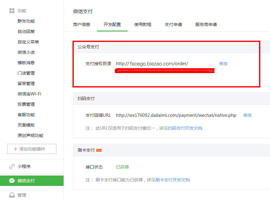 9.绑定完成后进入》微信支付,修改公众号支付