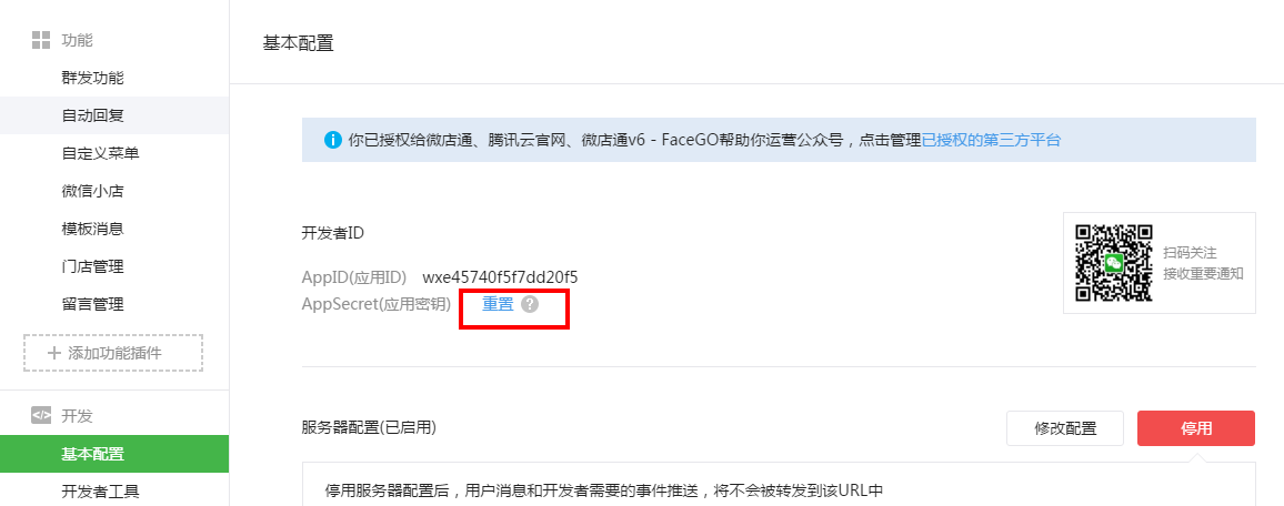 11.进入基本配置,重置appsecret(应用秘钥)