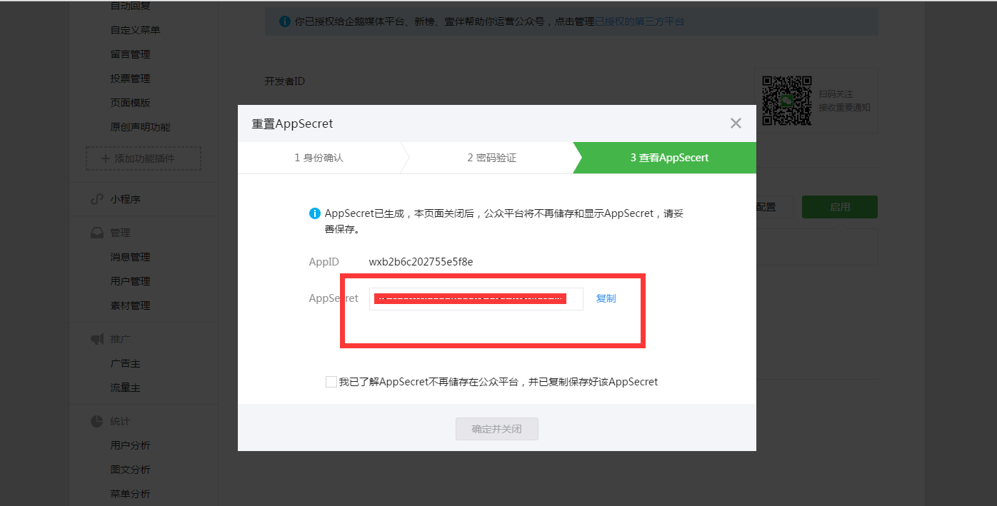 复制appsecret应用秘钥