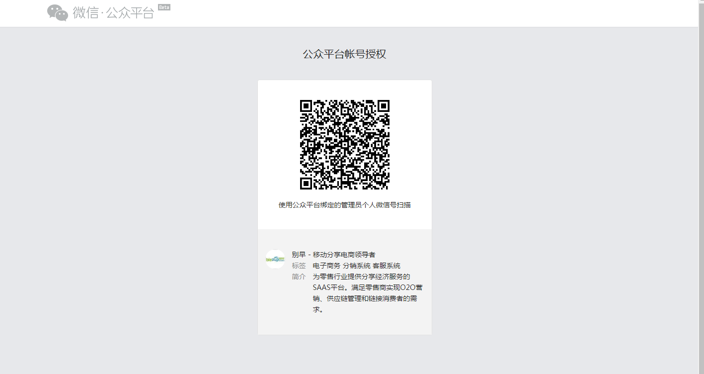 2、进入公众号登录授权页面,用微信公众号的管理员私人微信扫描二维码