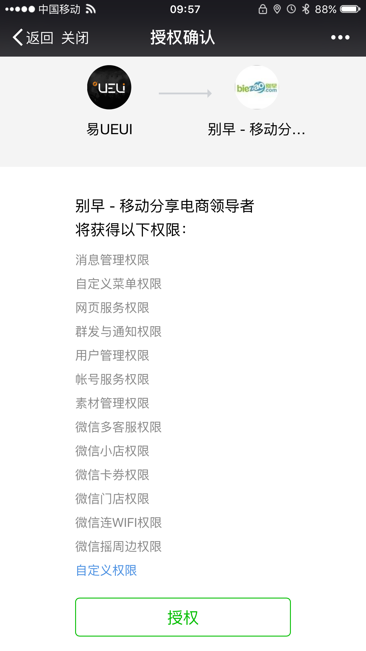 二 开始一键授权,店铺绑定微信