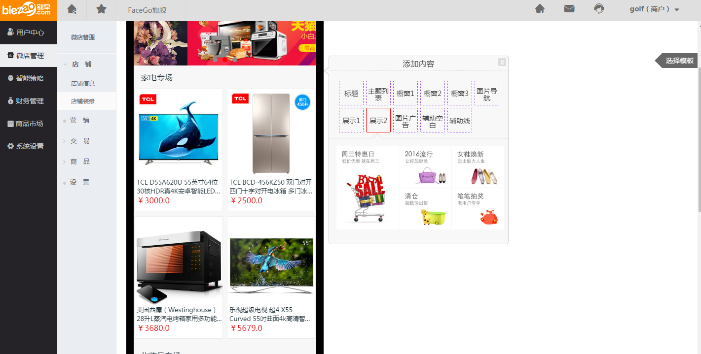 您可以直接编辑现有的店铺主页,或新建一个微页面装修,装修好了再将其设置为店铺主页。