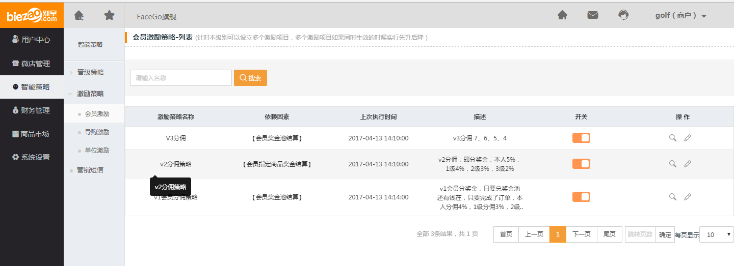 商家可添加几个策略同时运行,当用户同时满足时,执行激励