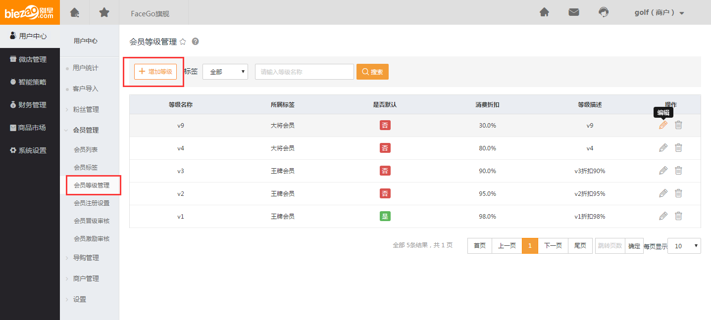 首先需要去用户中心添加一个角色等级,路径(用户中心 - 会员等级/导购等级/单位等级 - 增加等级)