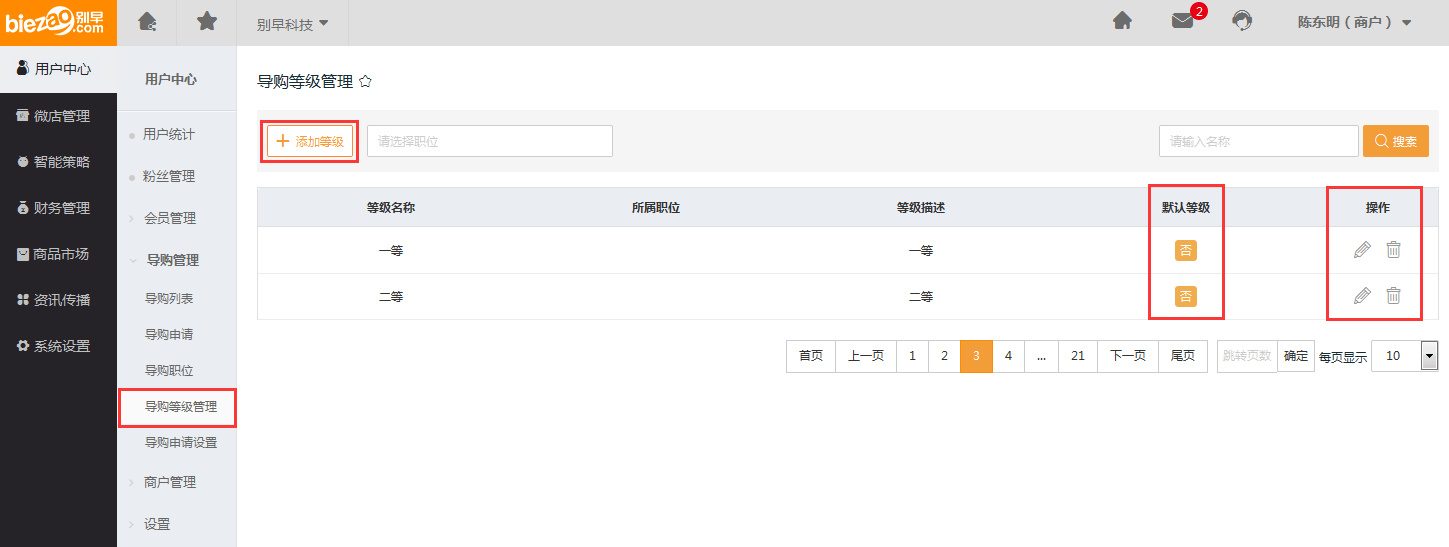 【导购等级管理】主要是对导购员职位的设置,可以【添加职位】,看到等级的级别,可以【编辑】职位等,如下图: