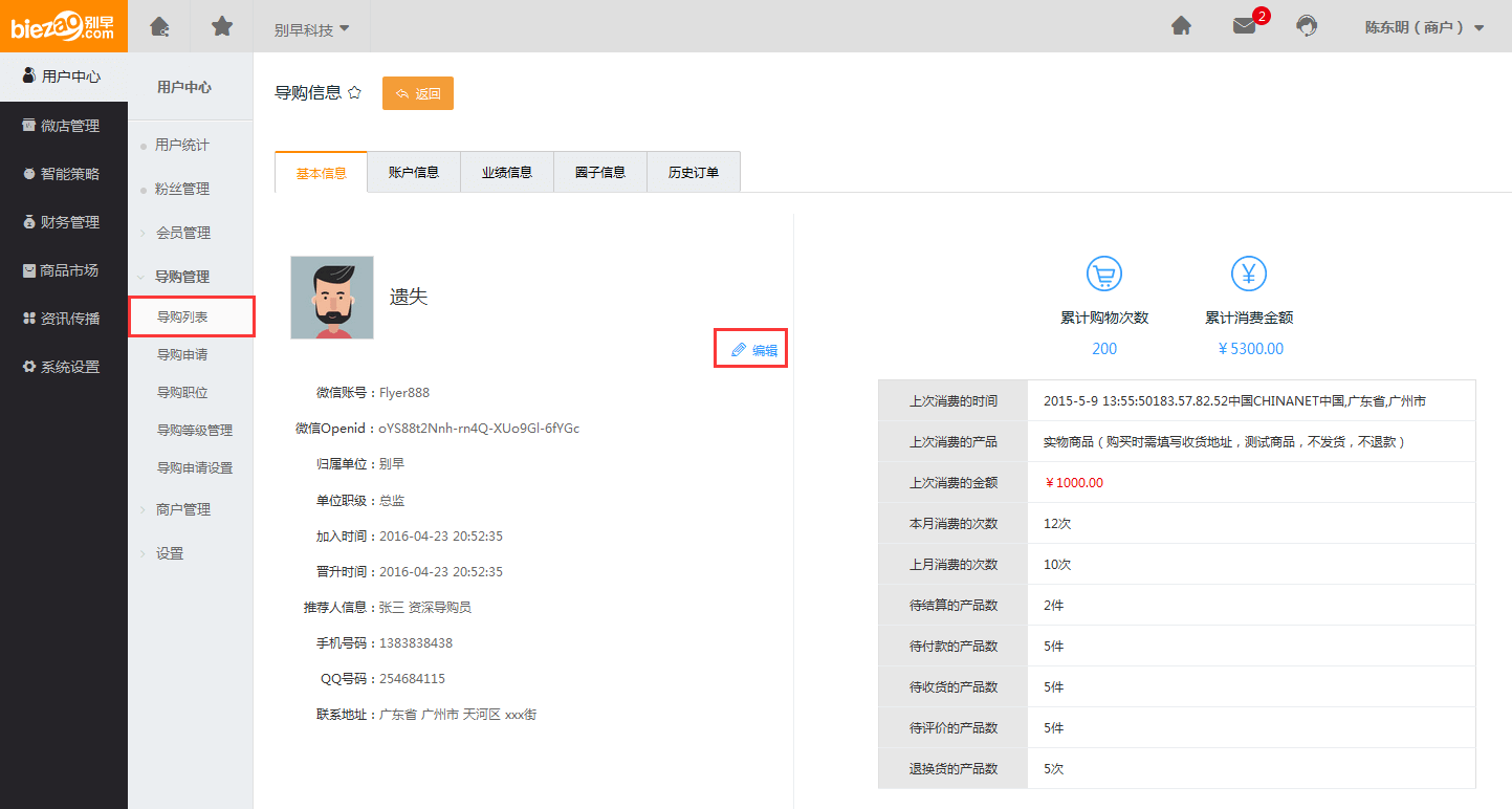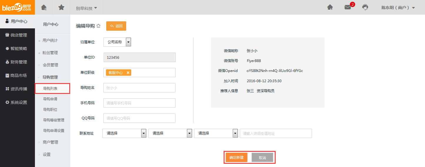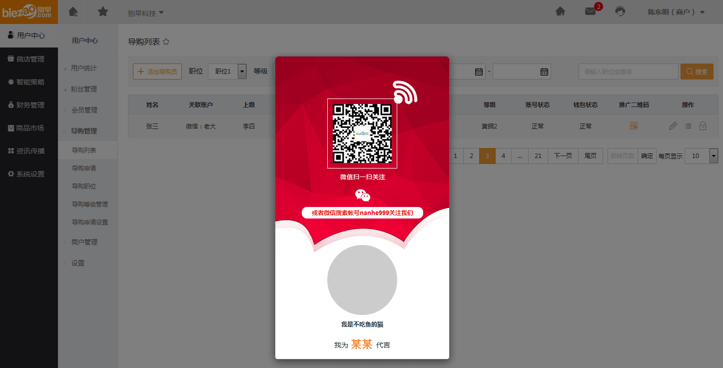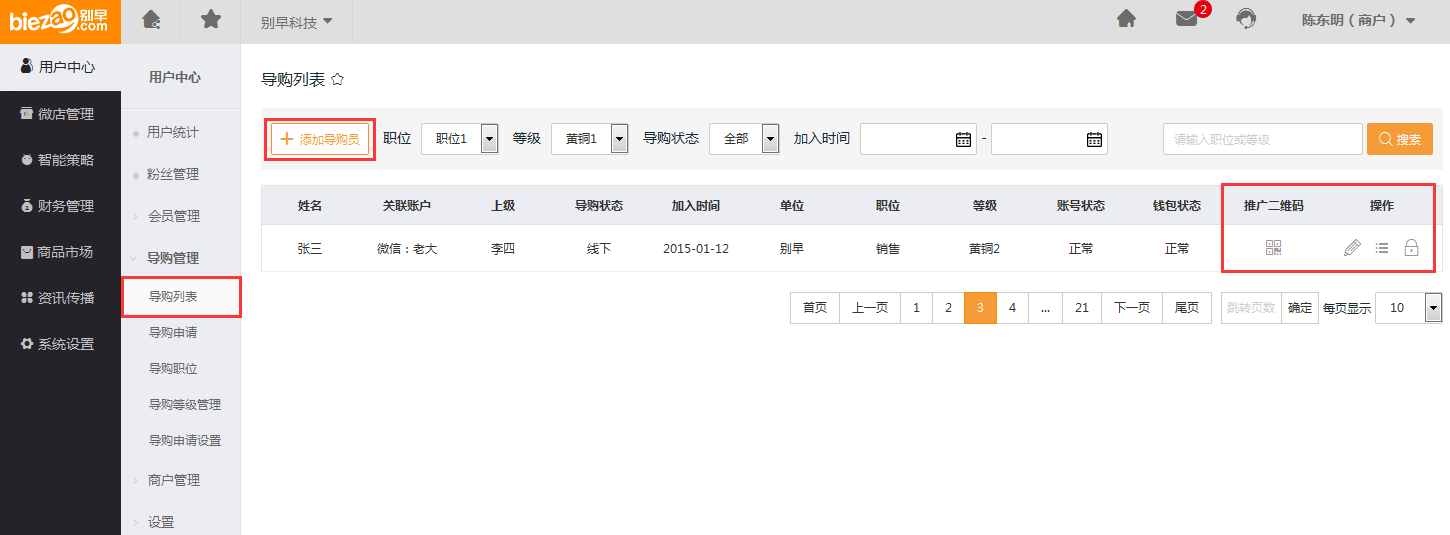 用户中心—导购管理—导购列表: