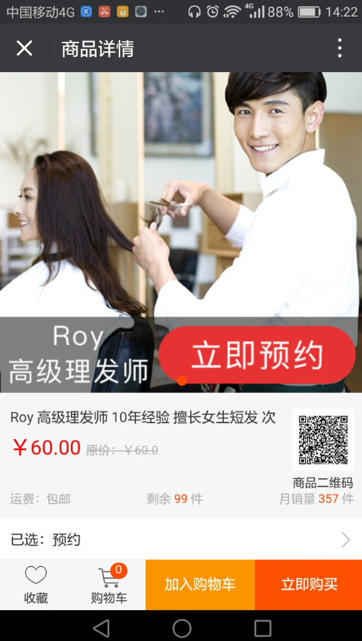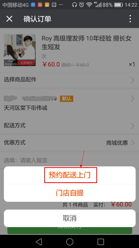商户可在商城中提供预约服务:例如粉丝想在商城中预定某产品,商户可开启预约模板,粉丝即可在商城中选择预约产品的配送时间、地点等,如图展示: