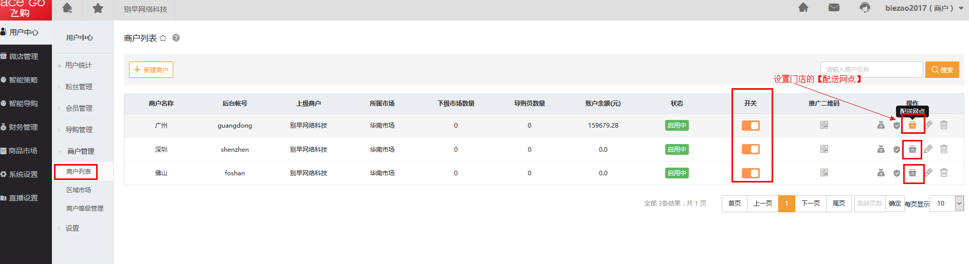 第二步 设置每个门店对应的【配送网点】。
